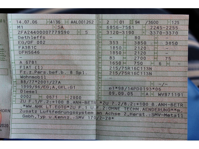 | Přípustná celková hmotnost v kg | 3.850 kg |