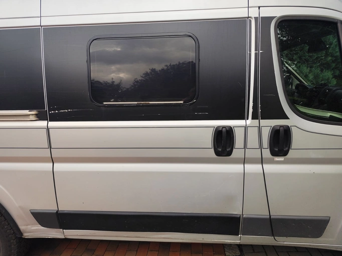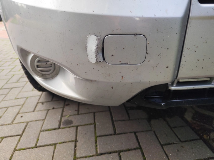 Zadní dveře a střecha po nárazu do krytého parkoviště (neopraveno); posuvné dveře a pravý zadní podběh kola po nárazu do betonového sloupku; převodovka: 2. rychlostní stupeň visí při podřazování; utržený kryt pravého předního tažného oka; několik škrábanců a poškození laku; utržený plastový kryt pravého zrcátka.