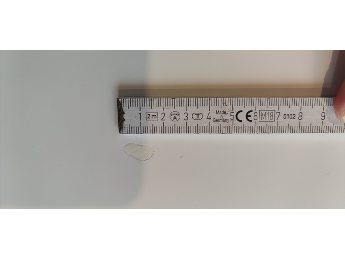 Skleněný kryt nese známky opotřebení / jídelní stůl má opravenou díru (cca 2 cm)