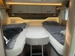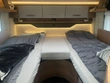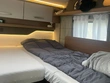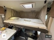 Lůžko HUB 180 x 150 cm nad kabinou řidiče se závěsem, střešním oknem, osvětlením a velkými úložnými prostory v klenuté střeše.