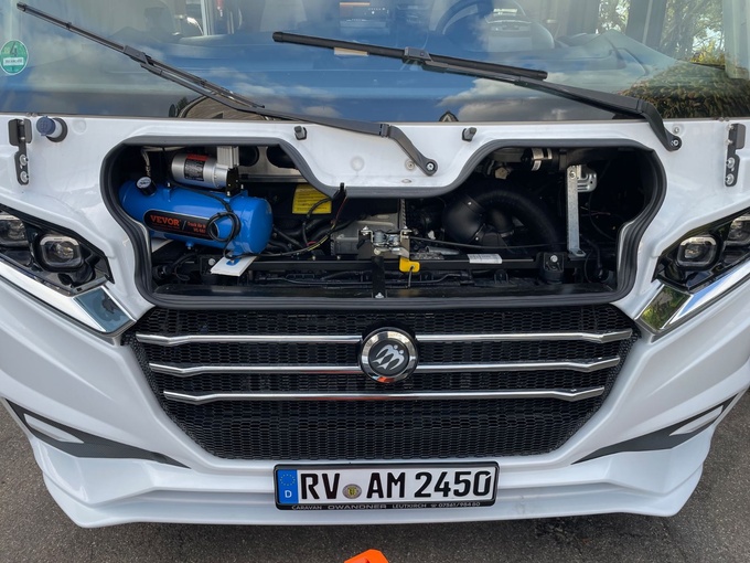 - Zásobník stlačeného vzduchu s automatickým kompresorem v motorovém prostoru a přídavným spínačem u řidiče