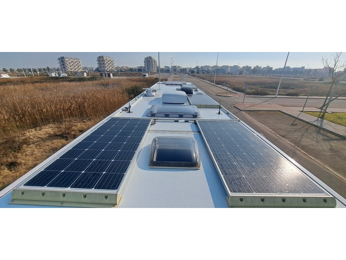 Solární systém sestávající ze 6 panelů po 175 W = 1050 W