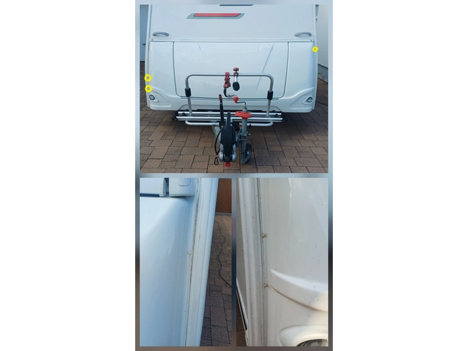 - Drobné poškození dekoru interiéru na zadní stěně sedací části (opraveno lepicí záplatou)