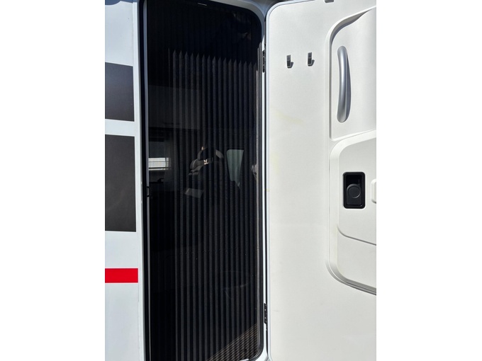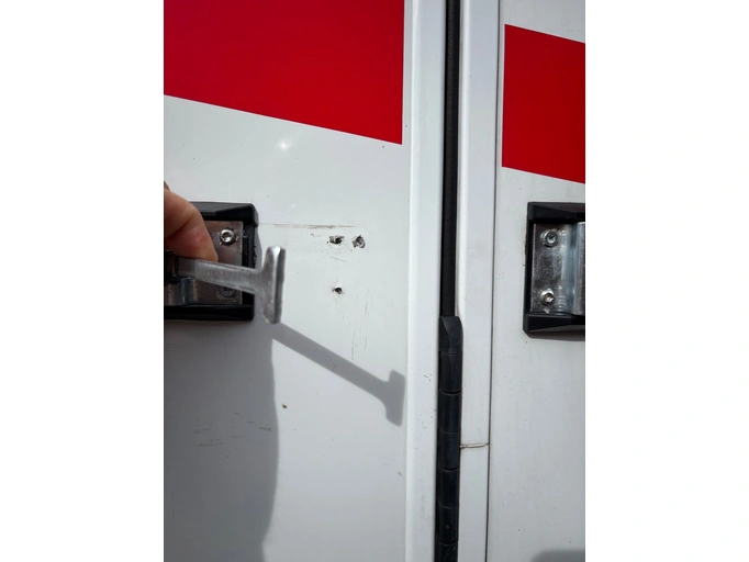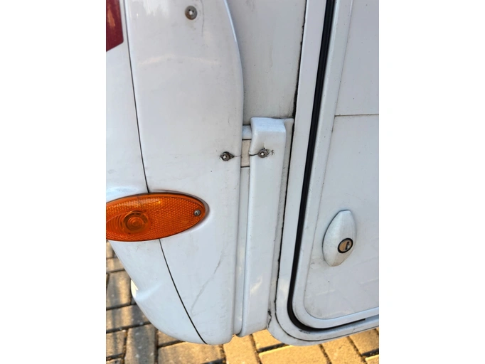 pravé boční dveře do obývacího prostoru ven, 2 díry po starém upevnění dveří - díry jsou utěsněné, ale nejsou natřené.